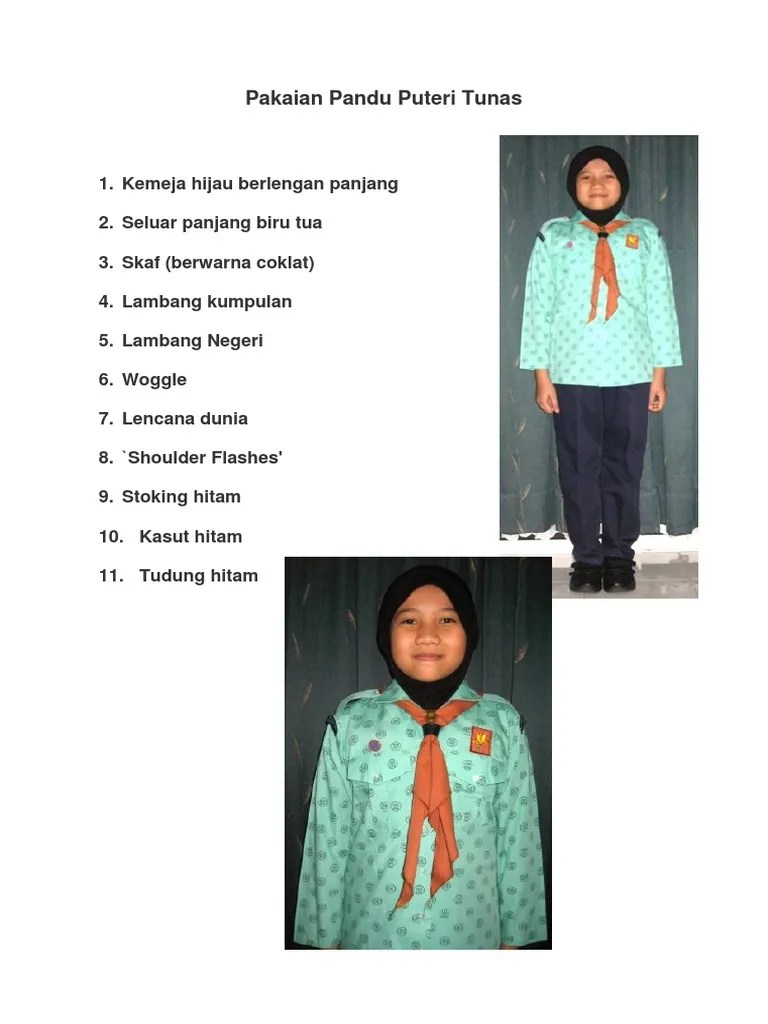 17k views streamed 1 year ago . Tshirt tunas puteri lengan panjang/ tshirt persatuan/ baju persatuan/ persatuan. Etika pemakaian baju badan beruniform pandu puteri, pengakap dan tunas kadet remaja sekolah. Uniform pandu puteri tunas (untuk murid sekolah rendah) rm40 exclude postage (price is negotiable) include uniform (size xs), pants (size 24), .